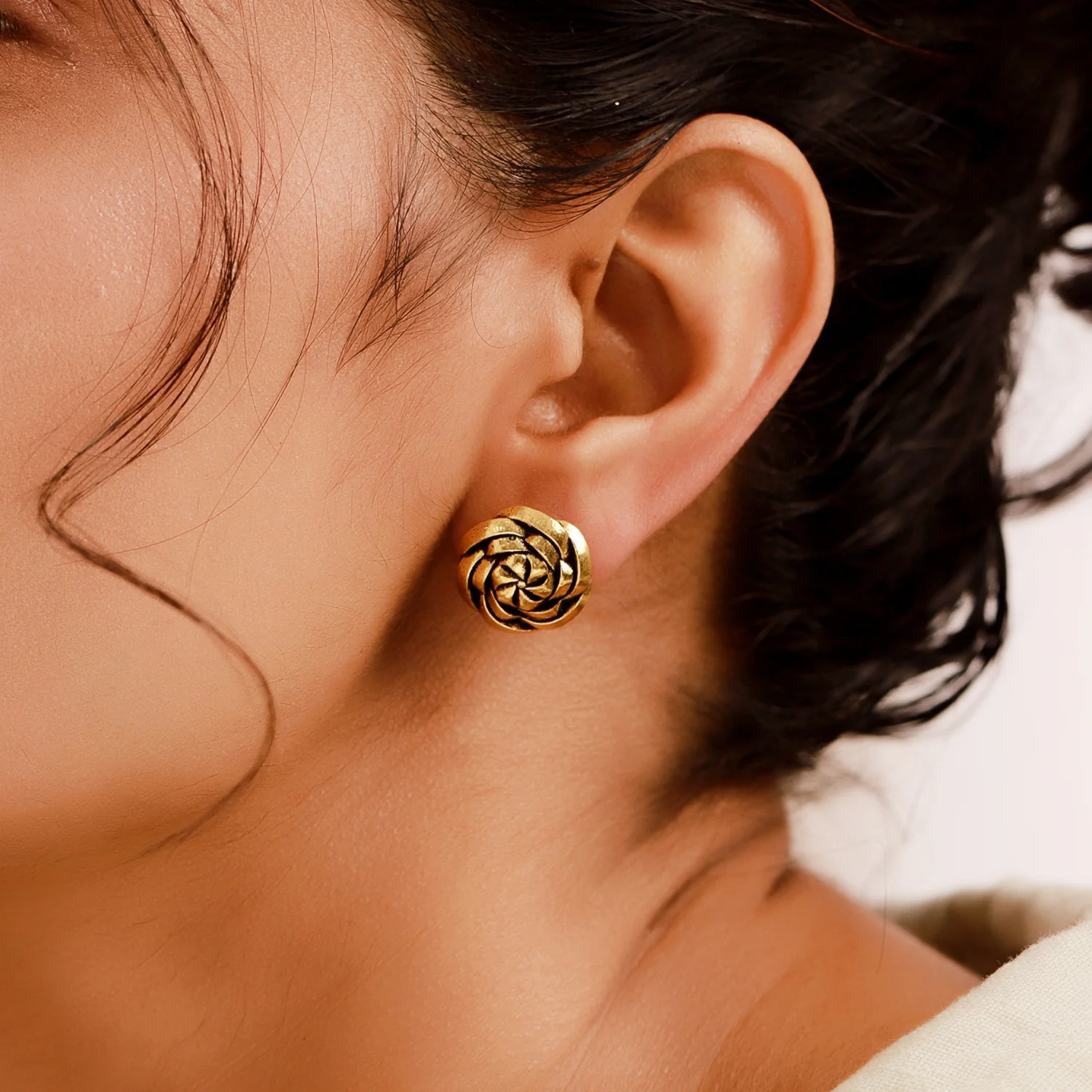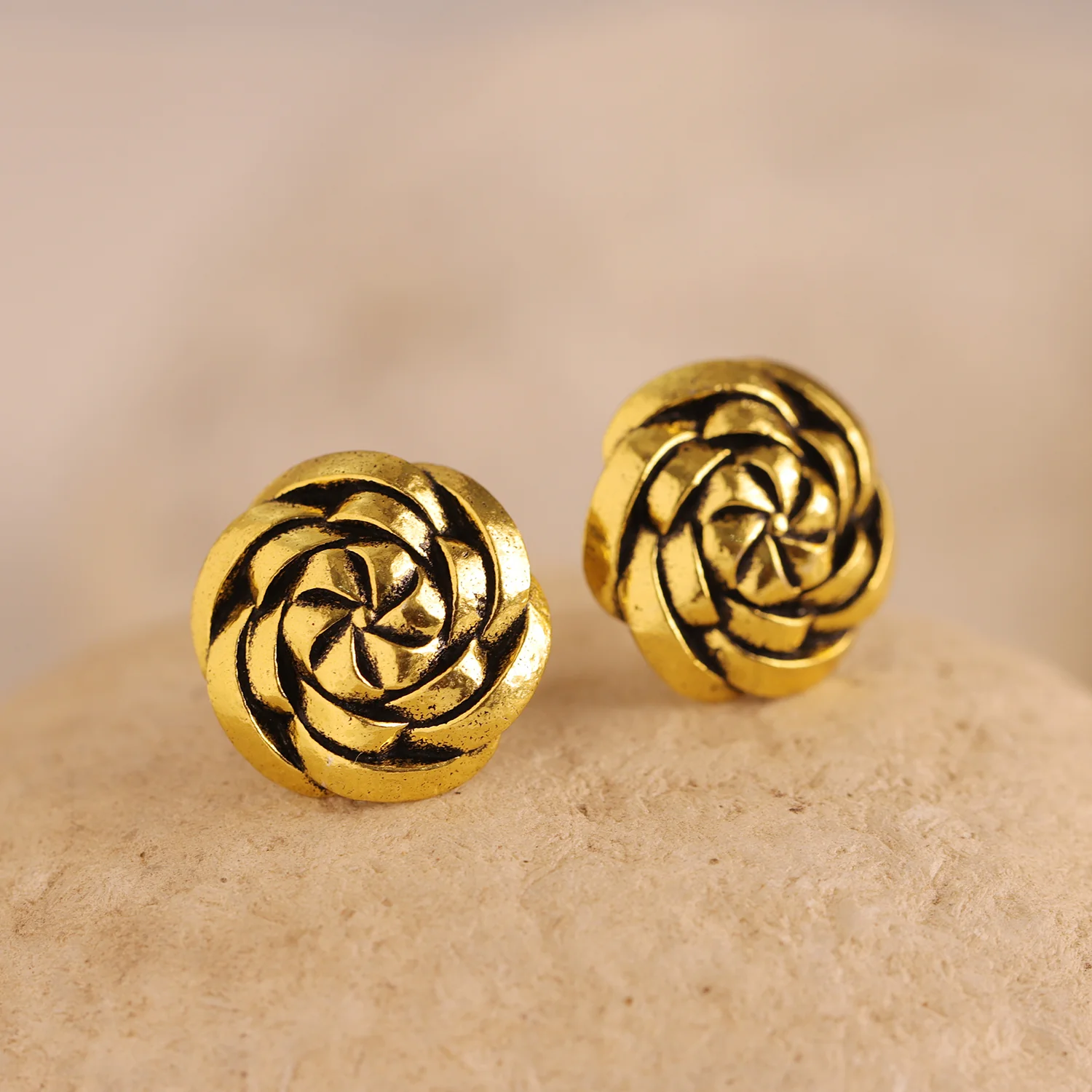 Embrace the art of sophistication with the Woven Wonder Twisted Stud Earrings. Crafted from high-quality brass and adorned with elegant gold oxidized plating, these earrings capture the intricate essence of basket weaving. The twisted design and woven rose motif highlight meticulous craftsmanship, making them a versatile accessory for any occasion. Whether you’re dressing up for a casual day at the office, a chic vacation look, or a festive celebration, these earrings are your go-to choice. Perfect for everyday wear, holiday events, or as a thoughtful gift for loved ones on Valentine’s Day, Diwali, Rakshabandhan, and more, these statement earrings are a symbol of timeless elegance. Elevate your style and celebrate the beauty of handcrafted jewelry with the Woven Wonder Twisted Stud Earrings.