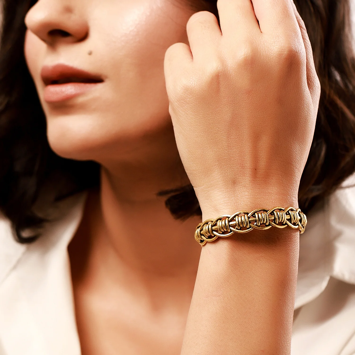 Celebrate the artistry of design with the Woven Wonder Weaved Cuff Bracelet, a true masterpiece for any jewelry lover. This bracelet features an intricate woven pattern that reflects the detailed craft of basket weaving, meticulously constructed from high-quality brass and adorned with a luxurious gold oxidized finish. As part of the Woven Wonder collection, this boho bracelet is perfect for everyday wear, adding a touch of elegance and sophistication to your casual and office looks. The gold oxidized plating not only enhances its aesthetic appeal but also ensures durability, making it a timeless addition to your jewelry collection. Whether paired with a chic outfit for a casual outing or styled as statement office jewelry, this bracelet complements any wardrobe effortlessly. Perfect for gifting on occasions like Valentine’s Day, Diwali, Rakshabandhan, Christmas, and more, it’s an ideal present for sisters, mothers, girlfriends, wives, and friends. Embrace the organic shapes and natural patterns of traditional basketry with the Woven Wonder Weaved Cuff Bracelet, where every detail speaks of craftsmanship and elegance.